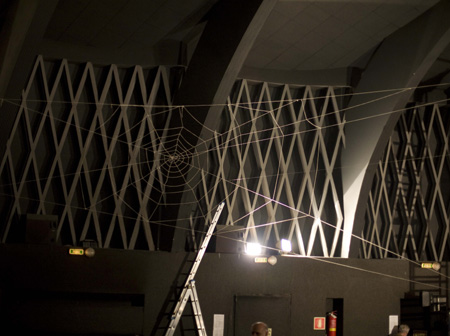 Il pubblico in sala, nell’attesa, osserva due imponenti ragnatele che il ragno ha tessuto lungo le pareti e osserva anche un trabattello alto fino al soffitto come se fosse stato predisposto per dei restauri sull’angolo più alto. Un occhio di bue si accende all’improvviso e si muove per tutta la sala cinematografica Cerca qualcosa. Sullo schermo, sulle pareti, sul soffitto. Ovunque... |